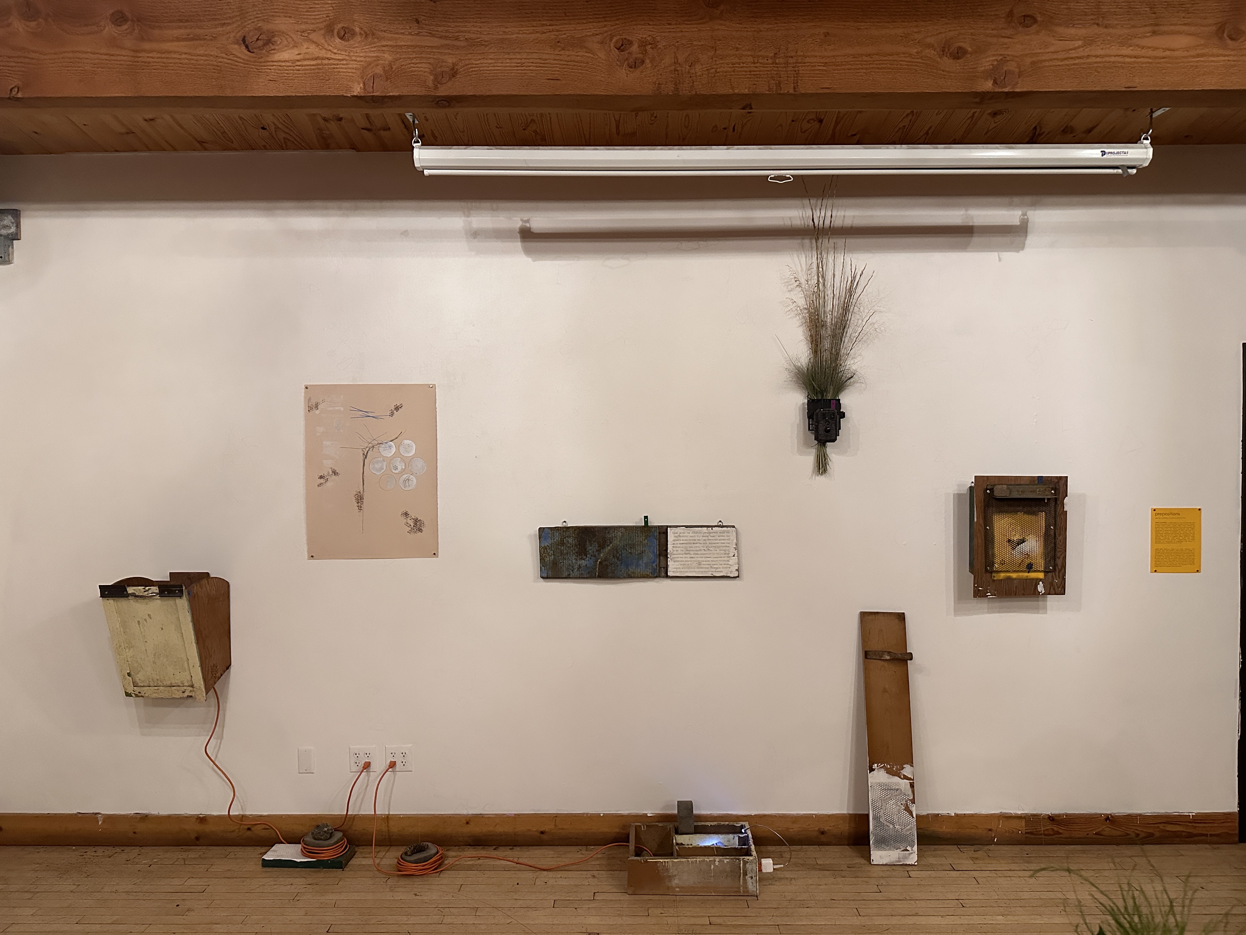 An intermedia installation at Wolverine Farm Publick House in Fort Collins, Colorado. September 2023. Featuring an array of work including drawing, sculpture, and sound. Reapplications of various materials exploring and troubling the spaces between the human-made domestic and the natural/nonhuman. An exploration of proximities generating meaning and identity.