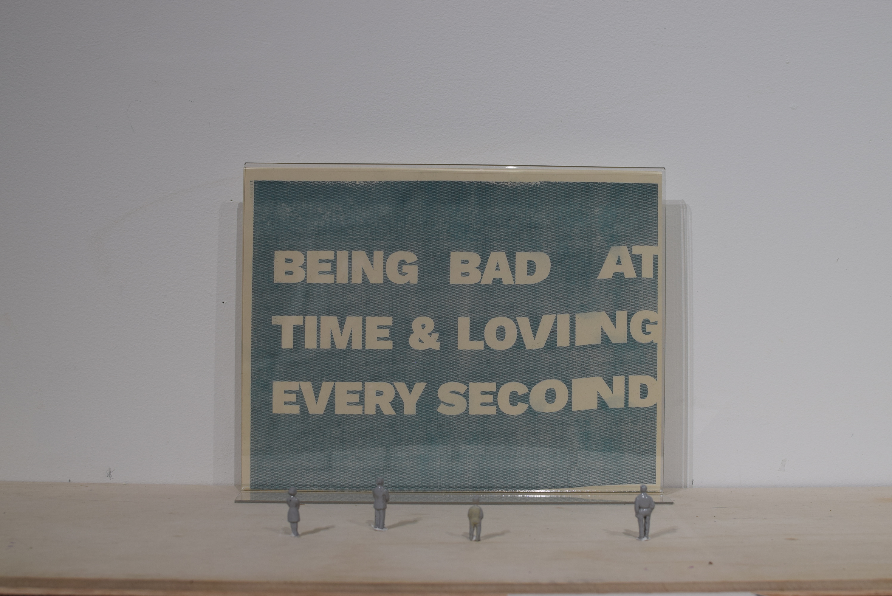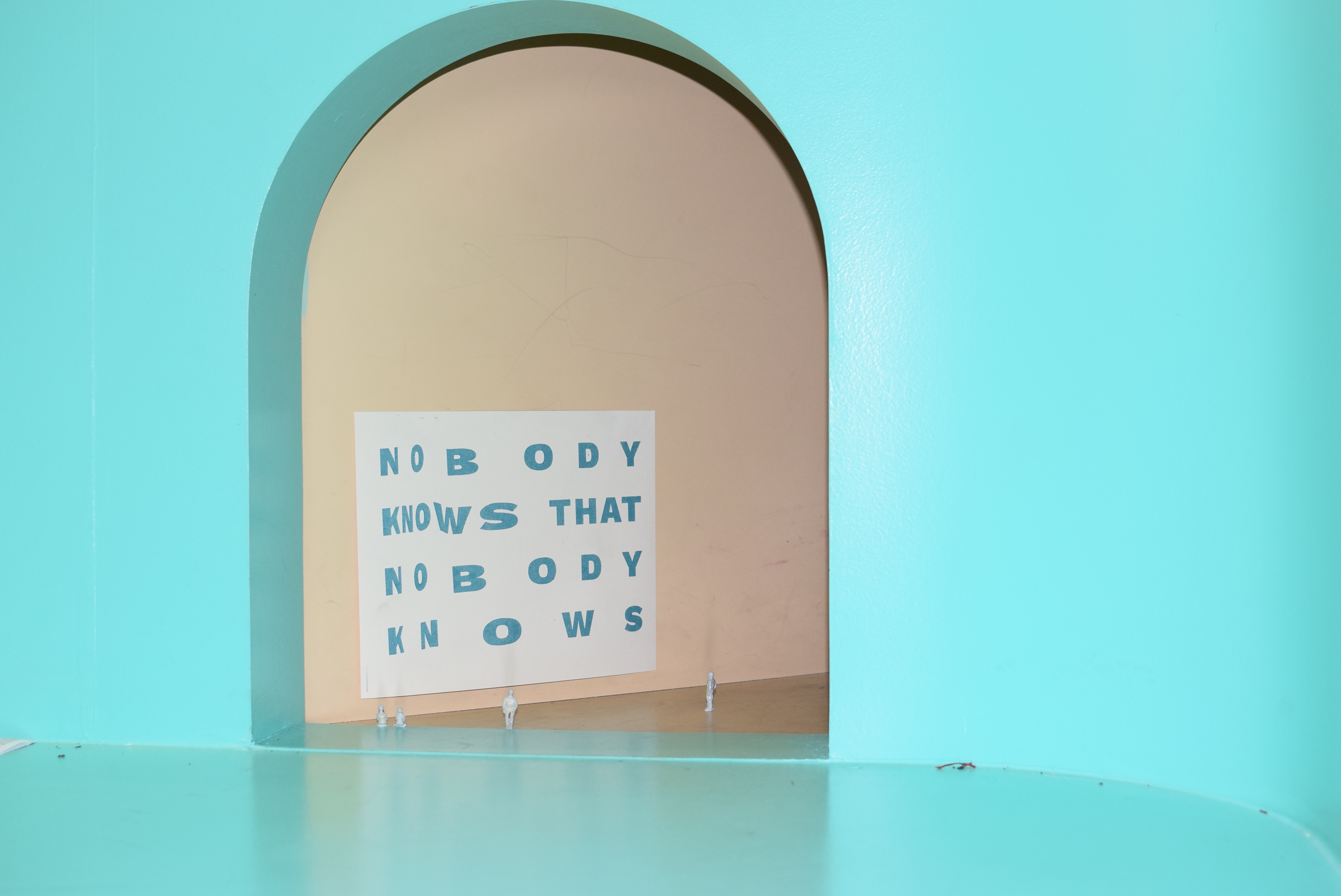 An installation/scavenger hunt featuring risograph printed maps and micro-poems, enamel miniature figurines, and a wall drawing as a part of the group exhibition Beginning to See the Light curated by Ariel Gentalen at Hyde Park Art Center, February - July 2019.